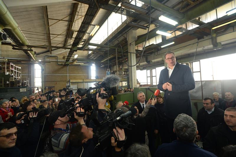 Обратио се радницима и пренео им три кључне ствари за фабрику - да ће им држава поклонити објекат у којем прозиводе, а који тренутно закупљују, да ће им затим помоћи у набавци нове опреме, као и да ће за 10 дана код њега доћи директор руског "Kамаза", што подразумева да ће се повећати производња српске фабрике.