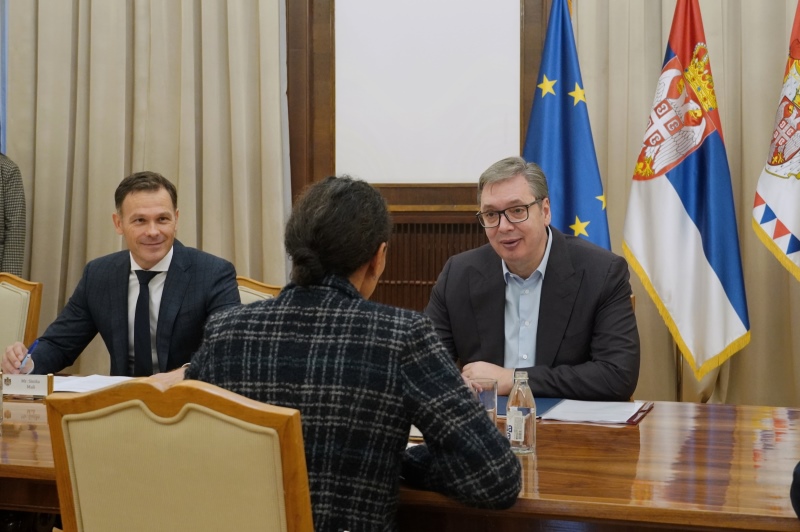 Председник Републике Србије Александар Вучић састао се са представницима Мисије Међународног монетарног фонда у Србији на челу са шефом Мисије Анет Кјобе, са којима је разговарао о актуелним економским кретањима, фискалној политици и реформским приоритетима Републике Србије.