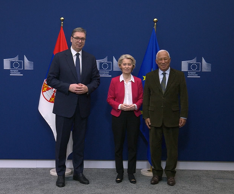 "Велика је част за Србију што сам имао прилику да вечерас у Бриселу разговарам са председницом Европске комисије Урсулом фон дер Лајен и председником Европског савета Антониом Коштом о кључним питањима билатералних односа Србије и ЕУ и нашем европском путу. Захвалан сам на њиховом гостопримству и искреној подршци нашој земљи, нашем европском путу, као и нашој реформској и развојној агенди", поручио је председник Вучић.