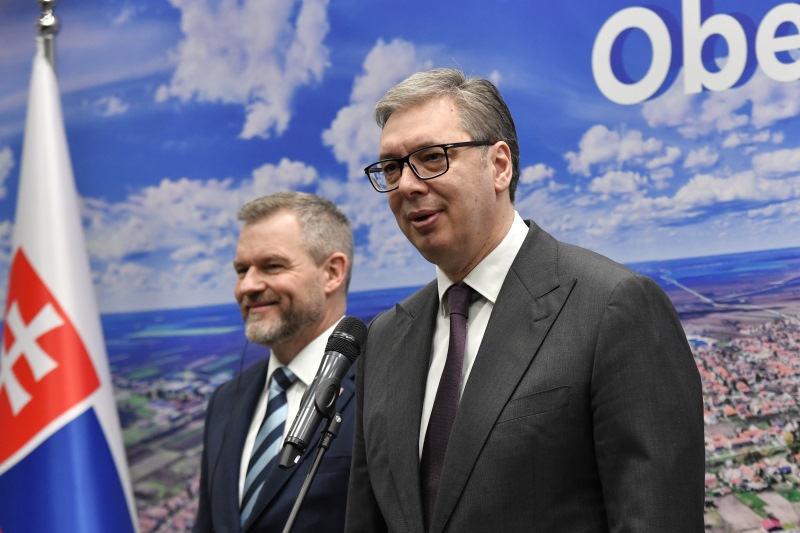 "Који заједно са нама пролазе и кроз добре и кроз нелаке или тешке тренутке. Захваљујем председнику Словачке Петеру Пелегринију што је Словачка увек подржавала и словачку заједницу овде, али увек подржавала и Србију и у њеној политици и у економској подршци коју пружа тим местима", навео је председник Вучић.