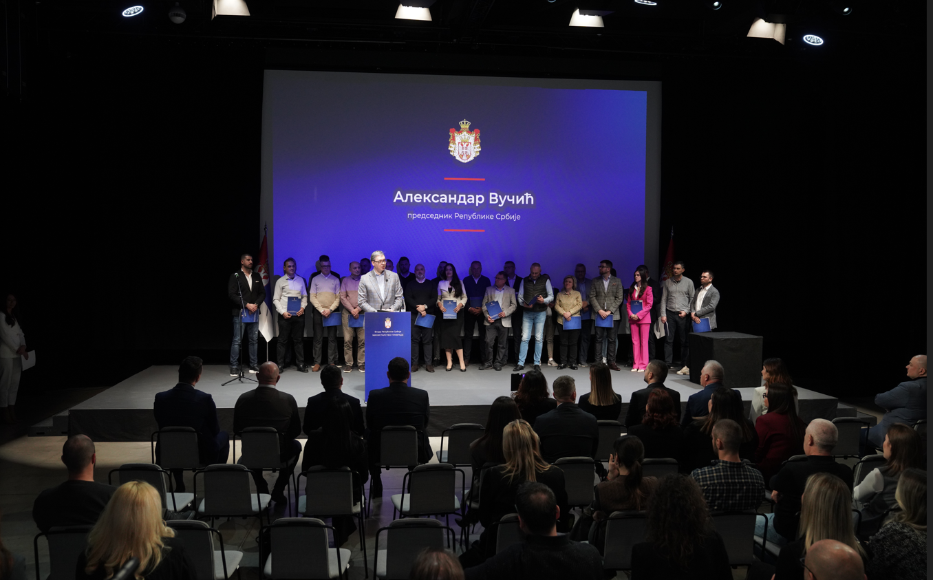 Председник Вучић свечано је данас уручио решења добитницима средстава по програму за подстицај развоја прерађивачких капацитета у области производње вина, пива и јаких алкохолних пића у 2025. години и најавио да ће кредитна средства за помоћ бити увећана са 10 на 20 милиона динара.