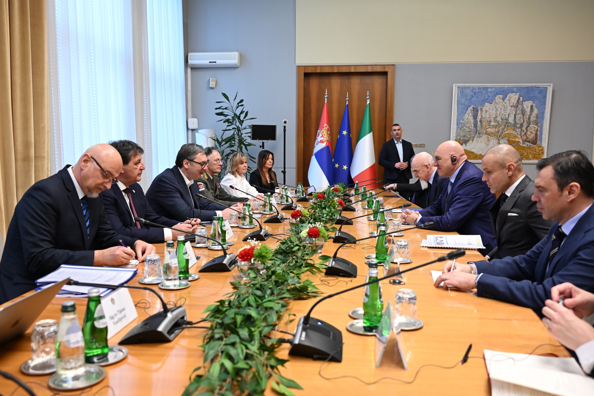 Нагласио сам да Србија остаје посвећена политици мира и војне неутралности, али и отвореној сарадњи са партнерима као што је Италија. Уверен сам да ћемо кроз интензивнији политички и одбрамбени дијалог додатно оснажити наше односе и заједнички допринети стабилности региона у времену великих глобалних изазова", поручио је председник Вучић.