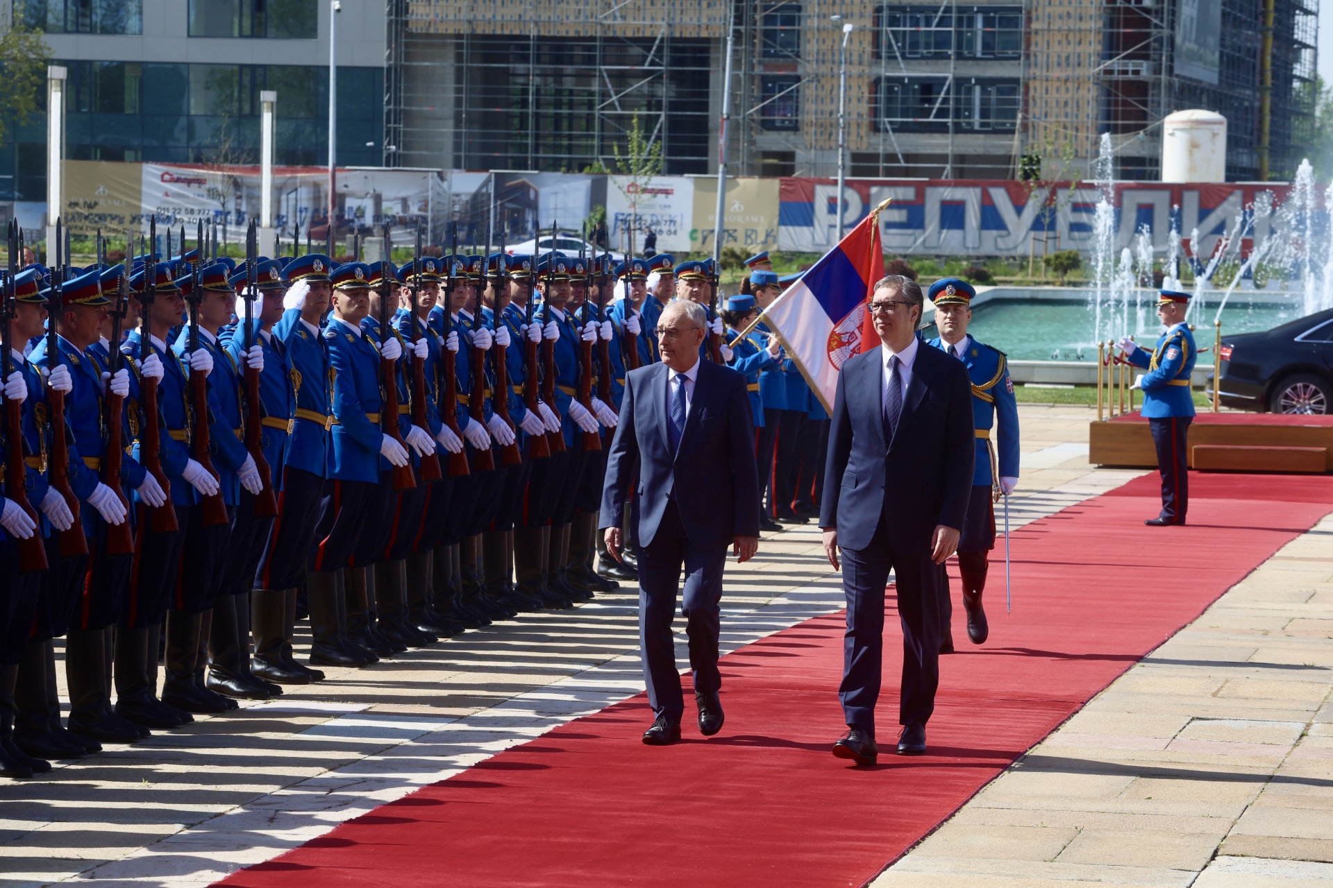 Председник Вучић је истакао да је веома срећан што може да угости председника Швајцарске у Србији после 18 година и на 110. годишњицу успостављања дипломатских односа Србије и Швајцарске.
